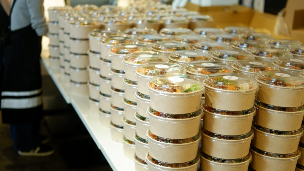 急な会議やイベントで大量のお弁当が必要な時も、HARAPEKOBUなら安心。専用キッチンにて、1日最大1,000食まで製造可能な体制を整えています。急な会議で100個弁当が必要になったなどのお悩みも私たちにお任せください。