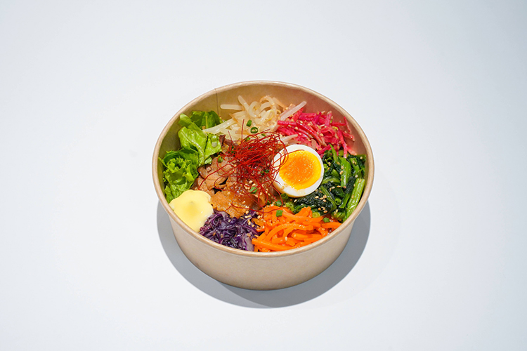 色とりどりの自家製ナムルと、甘辛く味付けしたプルコギをのせた韓国風ビビンバ弁当。野菜の食感と肉の旨味が絶妙に絡み合い、ヘルシーかつ満足感のある一品です。