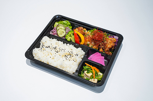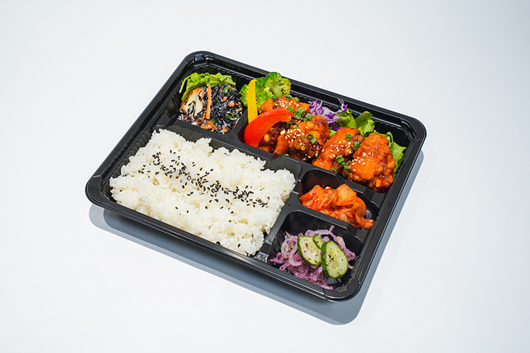甘辛い特製ヤンニョムソースをたっぷり絡めたチキンが主役の韓国風弁当。ピリッとした刺激とまろやかな甘みがクセになる味わいで、ご飯との相性も抜群。見た目も華やかで女性にも人気です。